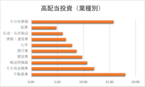 | 業種 | 銘柄数 | 比率(%) | 不動産業 | 2 | 18.00 | その他金融業 | 1 | 12.00 | 輸送用機器 | 1 | 10.68 | 建設業 | 4 | 9.72 | 銀行業 | 6 | 8.64 | 化学 | 2 | 7.80 | 情報・通信業 | 2 | 6.60 | 石油・石炭製品 | 1 | 6.00 | 鉱業 | 1 | 4.80 | サービス業 | 2 | 3.90 | 食料品 | 1 | 3.30 | 紙・パルプ | 1 | 2.40 | 卸売業 | 3 | 1.62 | ゴム製品 | 1 | 1.56 | 保険業 | 1 | 1.20 | 機械 | 1 | 0.60 | 医薬品 | 1 | 0.36 | 鉄鋼 | 1 | 0.36 | 電気・ガス | 1 | 0.24 | ガラス・土石製品 | 1 | 0.18 |