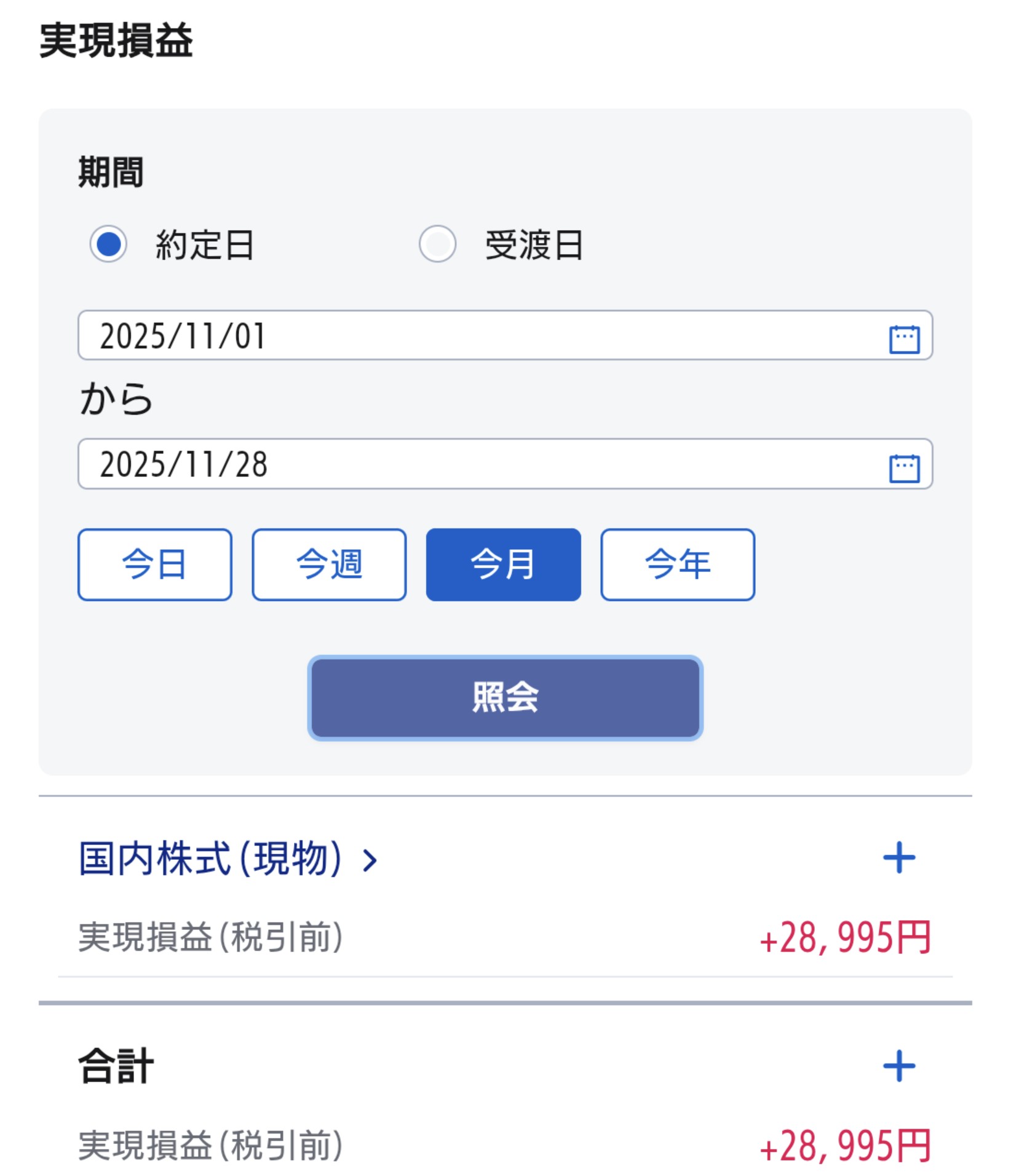 2025年11月第4週の実現損益