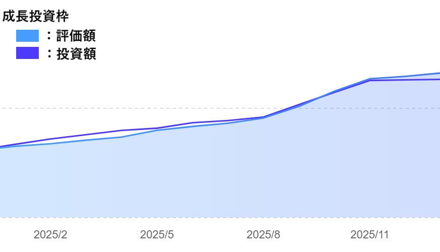 つみたて投資枠では、下落局面でもルールを変えずに積み立てを継続したことで、市場全体の回復と成長を自然に取り込むことができました。