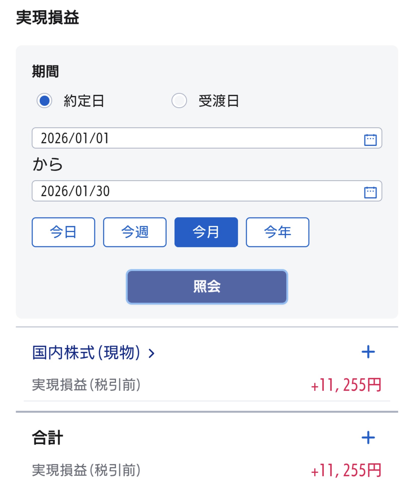 2026年1月第5週の実現損益